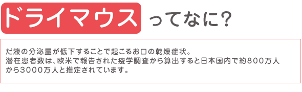 主な症状はお口の乾燥感やだ液のネバネバ感など。